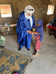 Aus Niamey brachte Mouhamed allen Schulkindern neue Flipflops und speziell nährende Creme – sehr gefragt – für die Mütter mit.